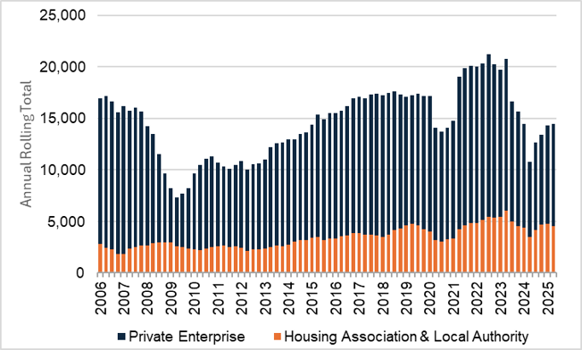 Supply is further constrained by the reduced capacity of housing associations to enter into new Section 106 agreements. Registered Providers are increasingly focused on maintaining existing stock to meet new environmental and safety standards, leaving some mixed-tenure schemes on pause despite planning permission being in place.